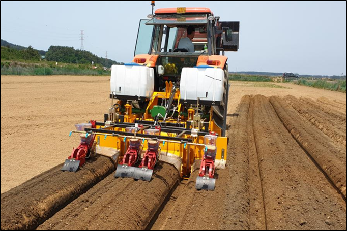 (기계화) 논콩 복합파종기의 적용: 두둑성형+파종+제초제살포